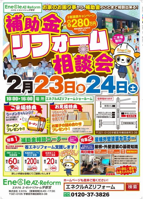 (会場:株式会社 エネクル エネクルAZリフォーム宇都宮) 詳しくはこちら >